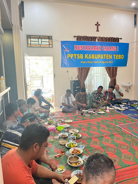 Jadilah pada hari Kamis 8 Agustus 2024 dilaksanakan MUSCAB I (pertama) PPTSB Kabupaten Tebo. Pelaksanaan Muscab di rumah Amang boru kita Marga Simajuntak di Muaratebo (200 an km dari Kota Jambi).
