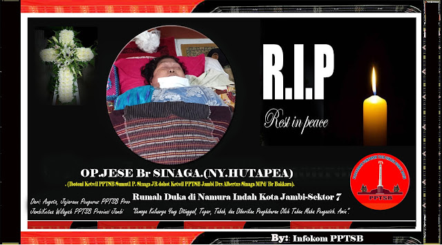 “An Pengurus PPTSB Pusat, kami Mengucapkan Turut berdukacita atas Meninggalnya Ito/Namboru kita OP.JESE Br SINAGA.(NY.HUTAPEA) DOA kami kiranya Arwah Almarhum diterima disisi Tuhan kita dan kepad Keluarga yang ditinggalkan diberi Penghiburan dan Ketabahan. Amin!!,” tulis Ketua Umum PPTSB Mangihut Sinaga SH MH.